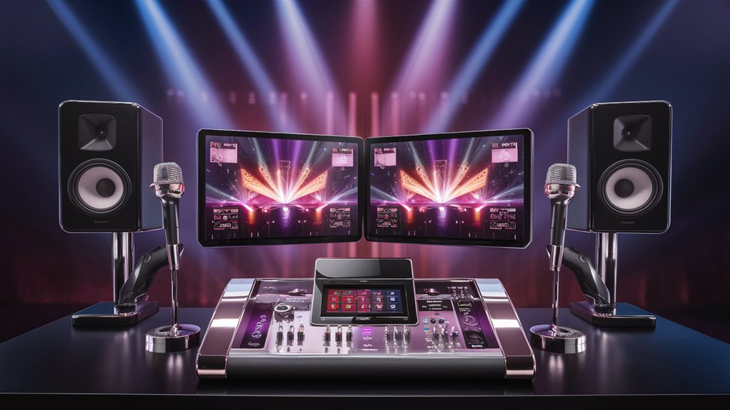 At the core is a karaoke unit or special software setup. Today’s setups need to use all kinds of file types like MP3, MP4, and CDG, and find songs quick. Two pro mics that catch sound well are key for clean voices and cutting feedback.