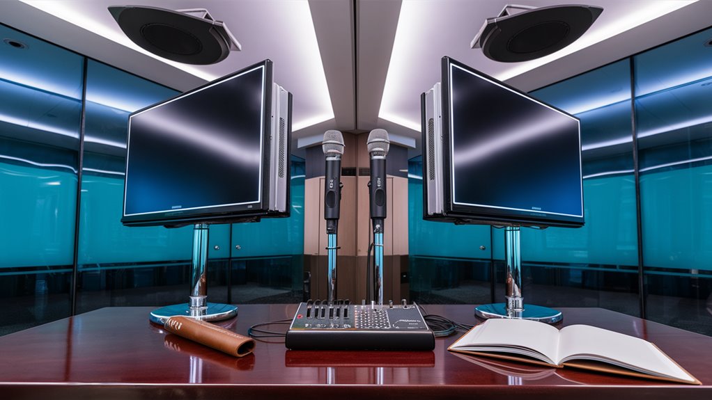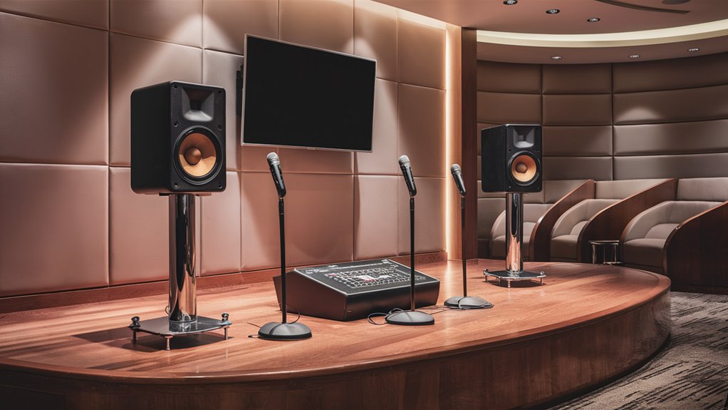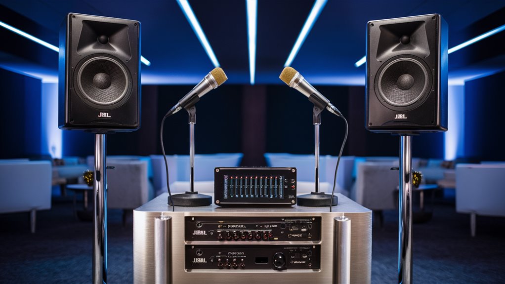 To get the top work karaoke setup, you need first-rate equipment, chosen for the best sound. Get a digital mixing board with at least 12 channels, 300W RMS speakers, and a strong subwoofer for deep and rich sound.