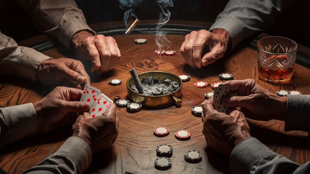 Dust & Ember poker introduced new methods that set it apart from traditional card games. Cards were placed face-down on bar tables, partly hidden by fire ash. This approach provided some stability to cards on rough surfaces and prevented cheats from marking cards.