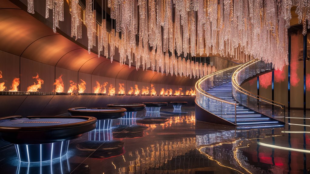 The casino’s fire-like aesthetic features 247 LED lights and a prominent 40-foot digital fire wall, which attract 47% more players. This design seamlessly blends aesthetics and functionality, enhancing entertainment.