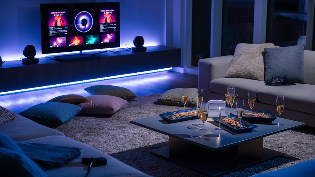 Better lighting turns any room into a great karaoke spot. Start with dim lights and add colorful lights by the stage.