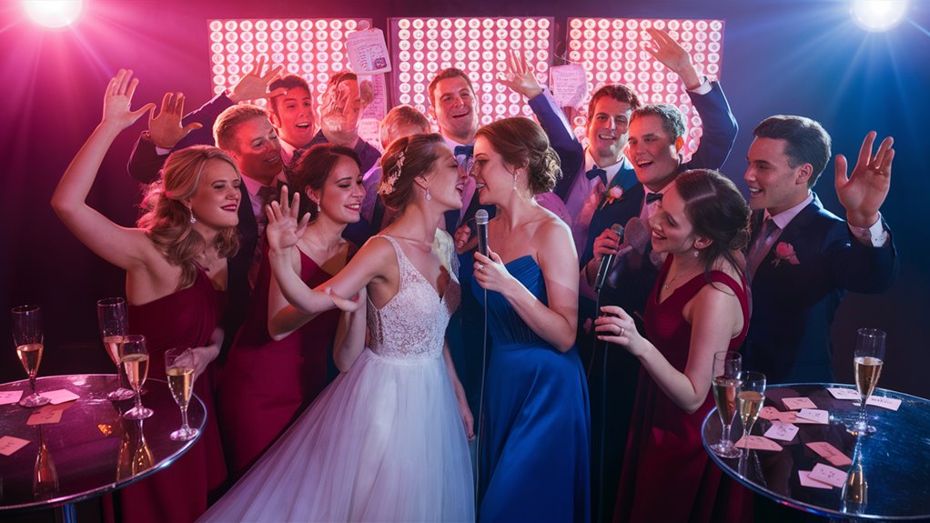 Have a karaoke pro run the show to keep the energy high. Set time slots for key songs or special folks. Mix karaoke well with other fun at the wedding for a great time.