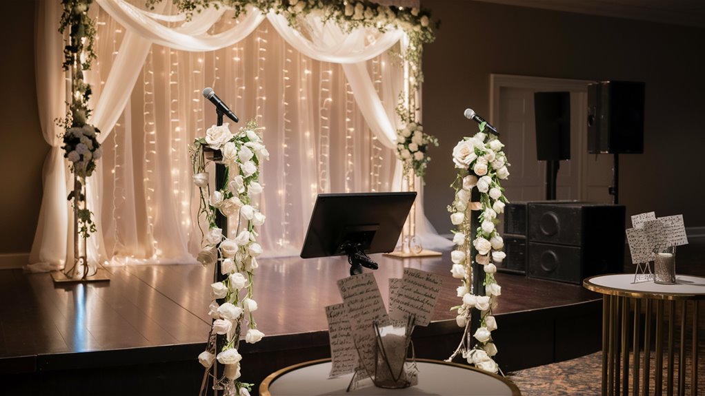 Make a clear sing spot with room for many singers. Add LED floor lights or theme looks to mark it while keeping to wedding style. Put a drink spot and place to pick songs close for quick grab. Use smart wires set-up to keep safe and clean. Secure all gear right to make sure they stay safe through the fun.