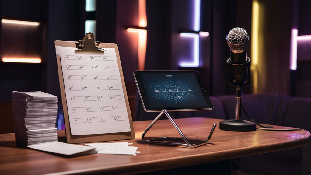 Place a clear stage area at a 45-degree angle to help people see and join in. Put comfy chairs in a 15-degree layout so everyone can watch. Pro audio setup means keeping the sound at 85 dB and using high-quality sound gear for clear sound.